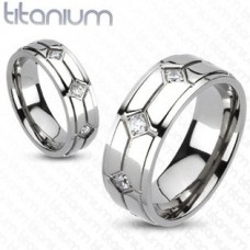 Titánové obrúčky zdobené matným pruhom a zirkónom.
